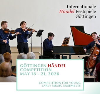 Die Teilnehmenden an der 9. göttingen händel competition 2026 für junge Ensembles der Alten Musik stehen nun fest. Aus 13 Bewerbungen wählte die Jury acht Ensembles aus, die im Rahmen der Internationalen Händel-Festspiele Göttingen um den mit 5.000 € dotierten Preis der Göttinger Händel-Gesellschaft sowie um vier weitere Preise konkurrieren werden.